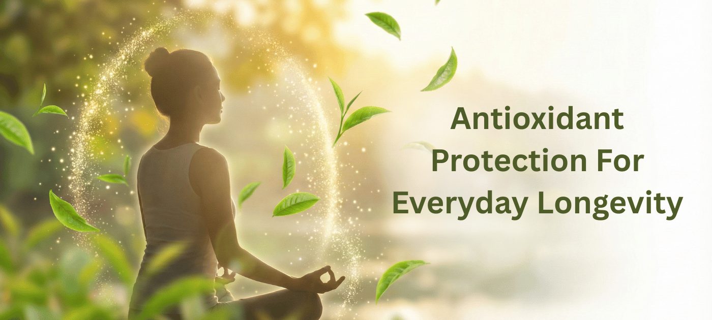 Pure antioxidant-rich green tea for daily longevity, cellular protection, and vitality.