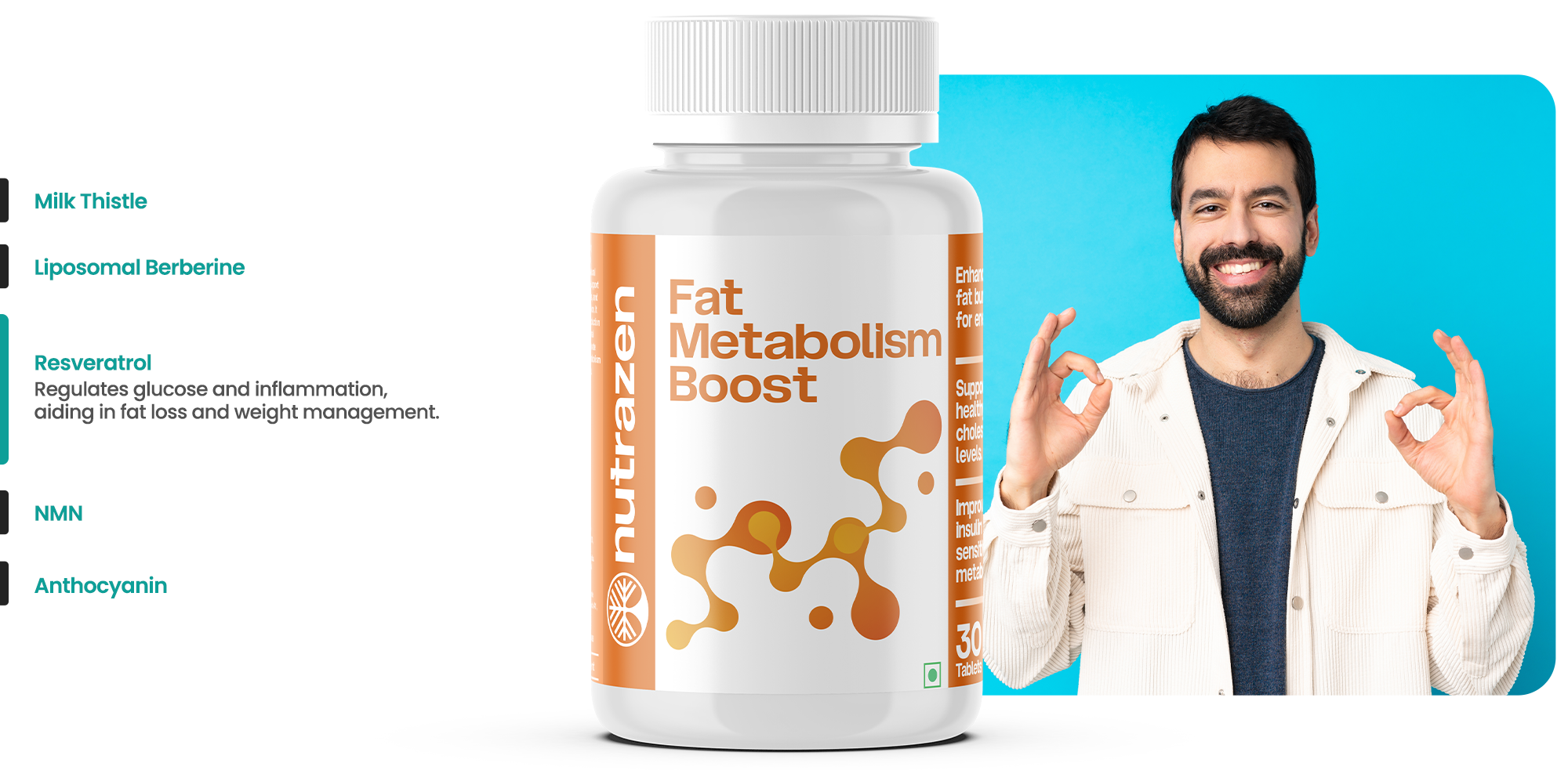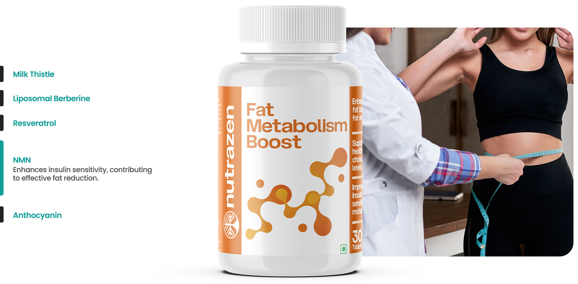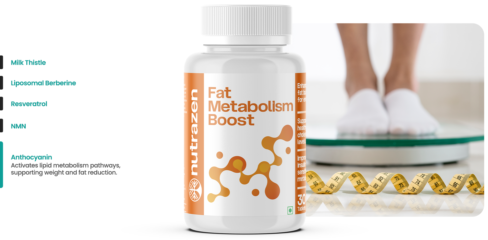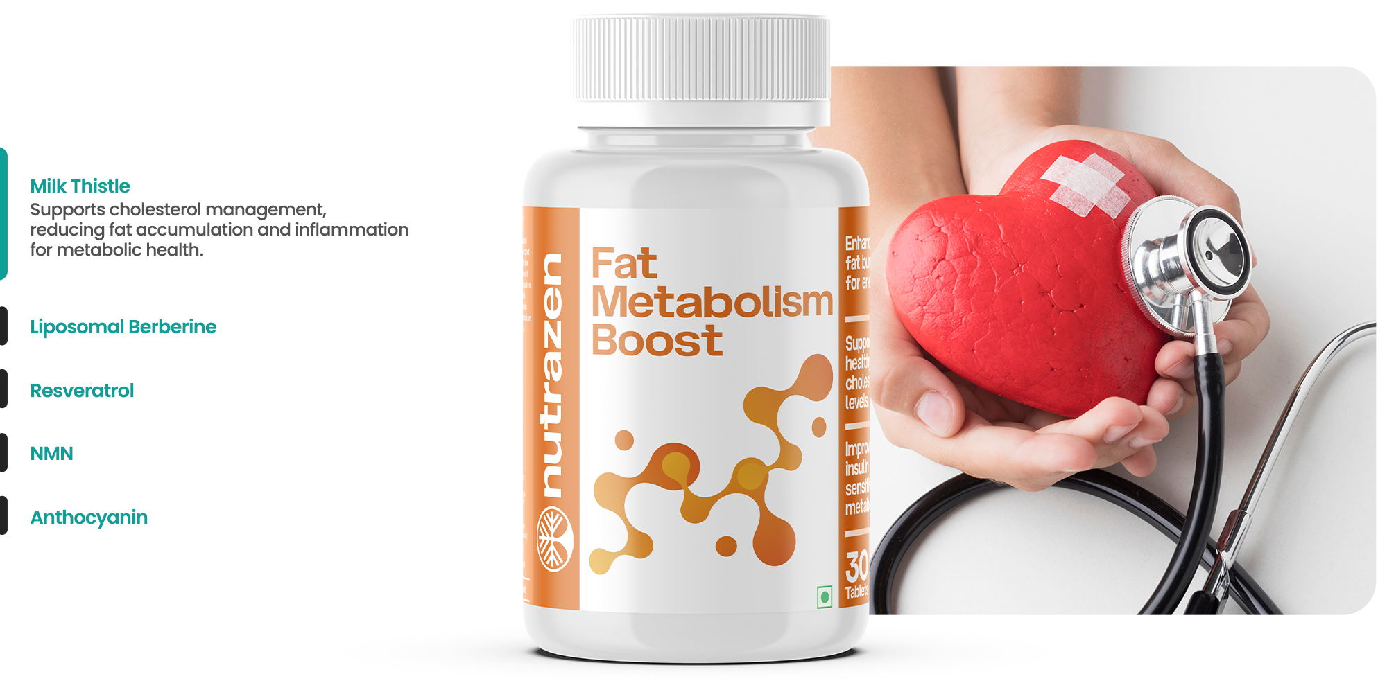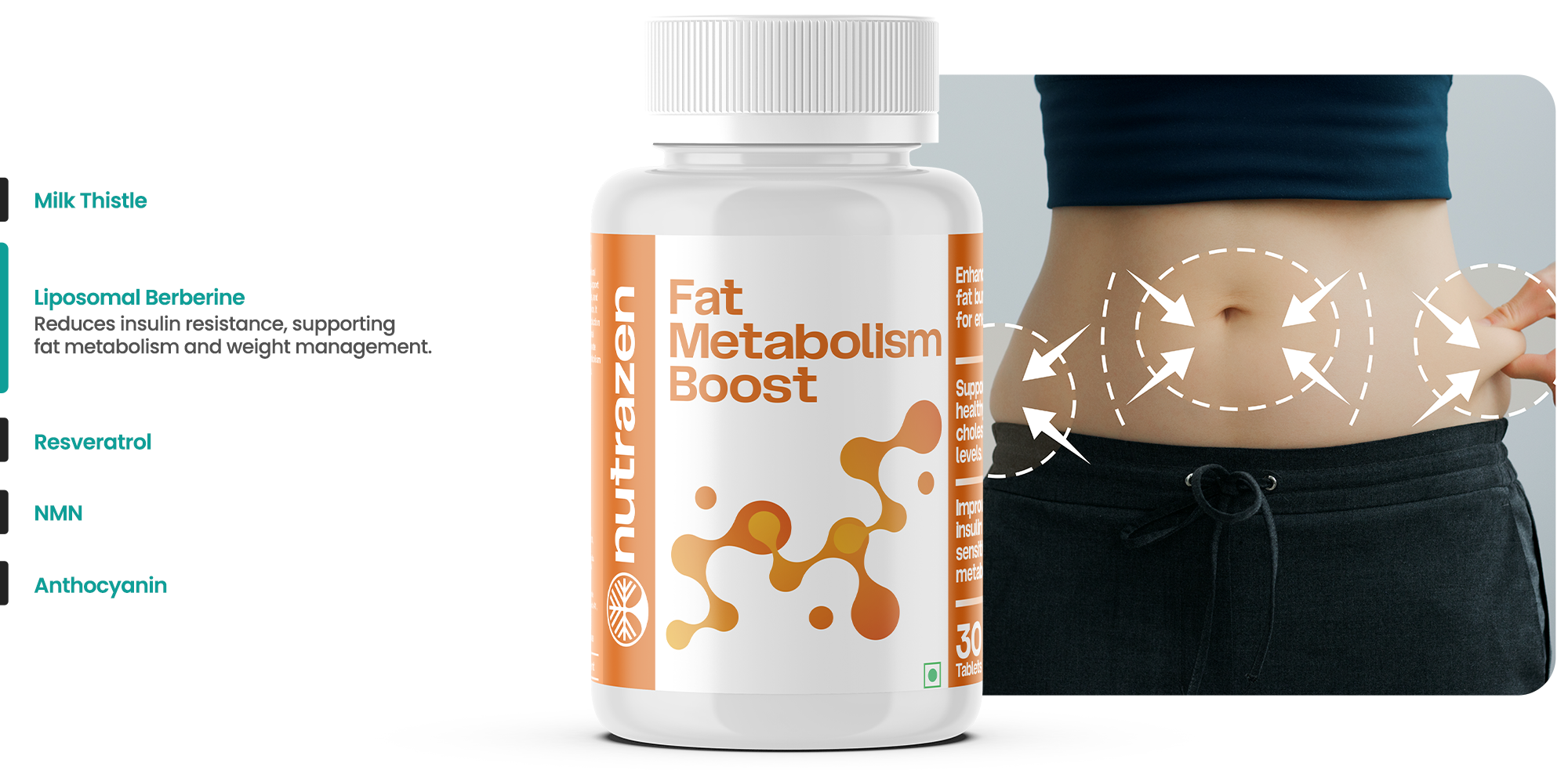 Fat Metabolism Boost by Nutrazen is designed to enhance your body's natural fat-burning processes, support healthy cholesterol levels, and improve metabolic function. It promotes effective fat reduction and helps maintain optimal weight management. Elevate your vitality with Fat Metabolism Boost and Live Limitless.