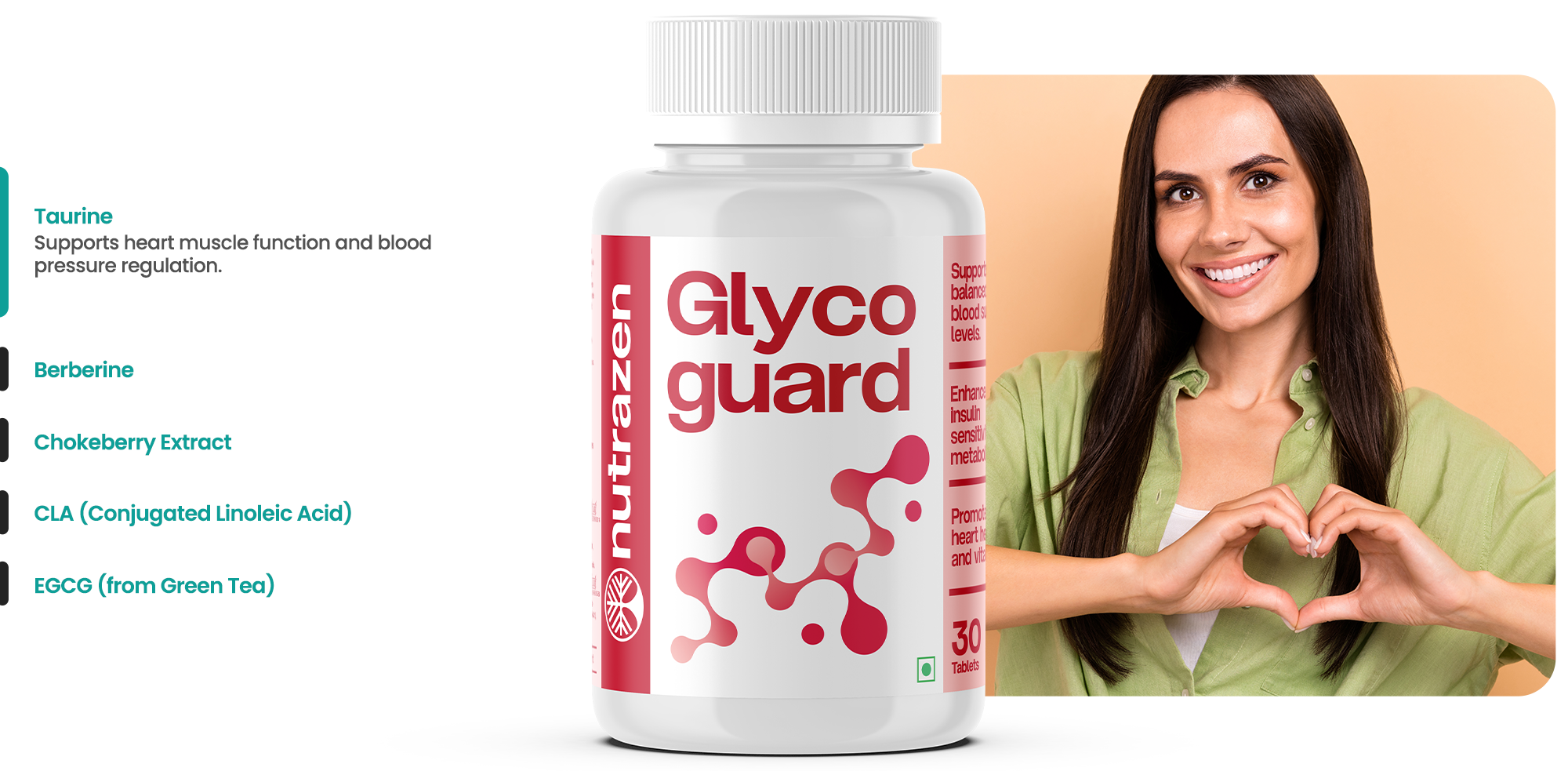 Glycoguard is a dietary supplement that supports healthy blood sugar levels, improves insulin sensitivity, and enhances metabolic health. It contains scientifically-backed ingredients that synergistically promote glucose metabolism, heart health, and cellular vitality.