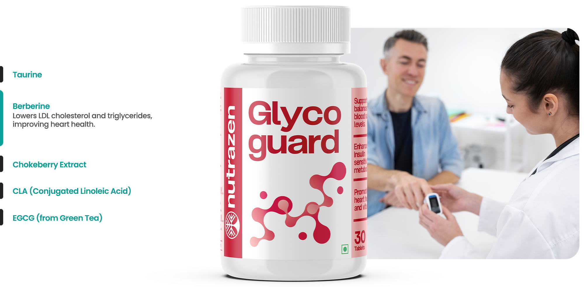 Glycoguard is a plant-based, research-backed supplement crafted for individuals with insulin resistance, metabolic syndrome, deranged lipid profile, prediabetes and diabetes. It enhances insulin sensitivity, supports glucose metabolism, and balances blood sugar levels. Enriched with clinically validated botanicals like Berberine, Banaba, and Bitter Melon, it also promotes liver detox, heart health, and metabolic resilience—naturally managing the root causes of blood sugar dysregulation.