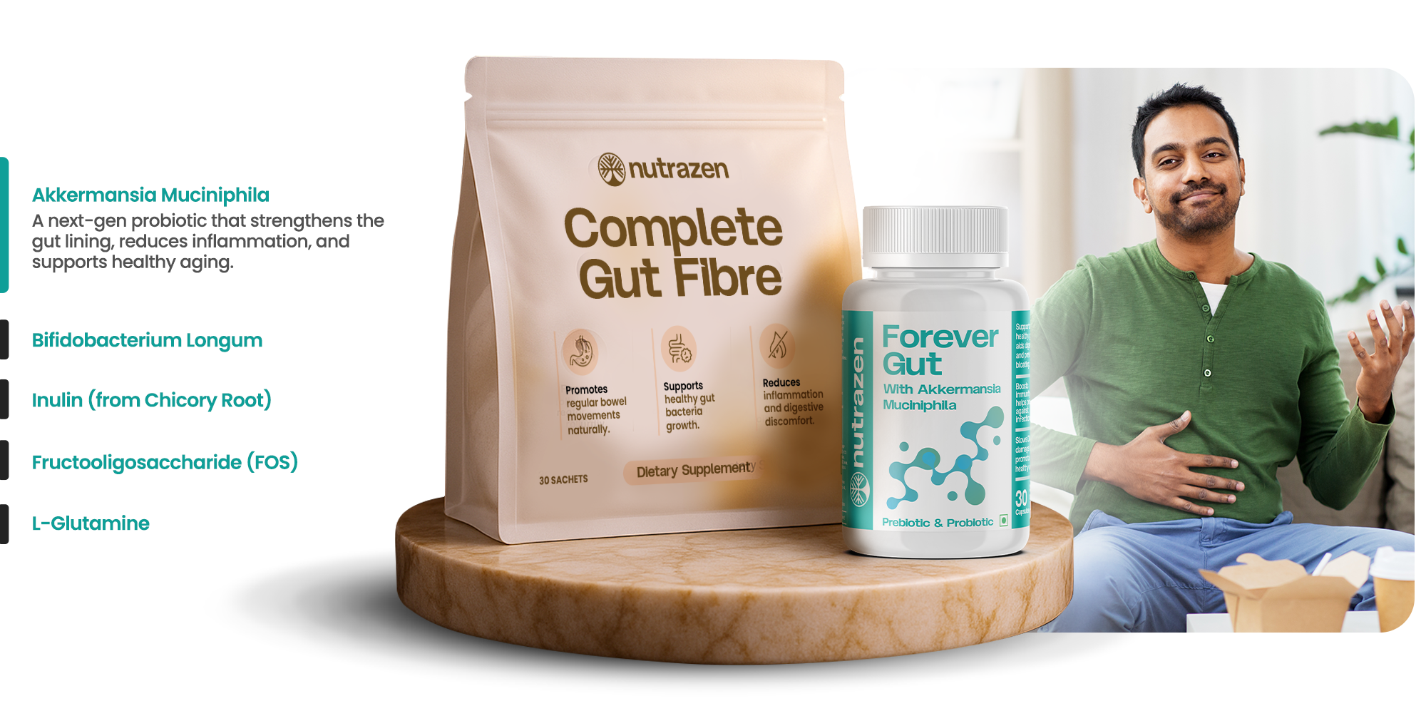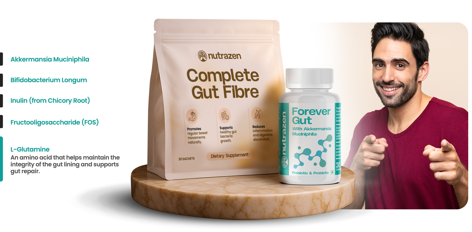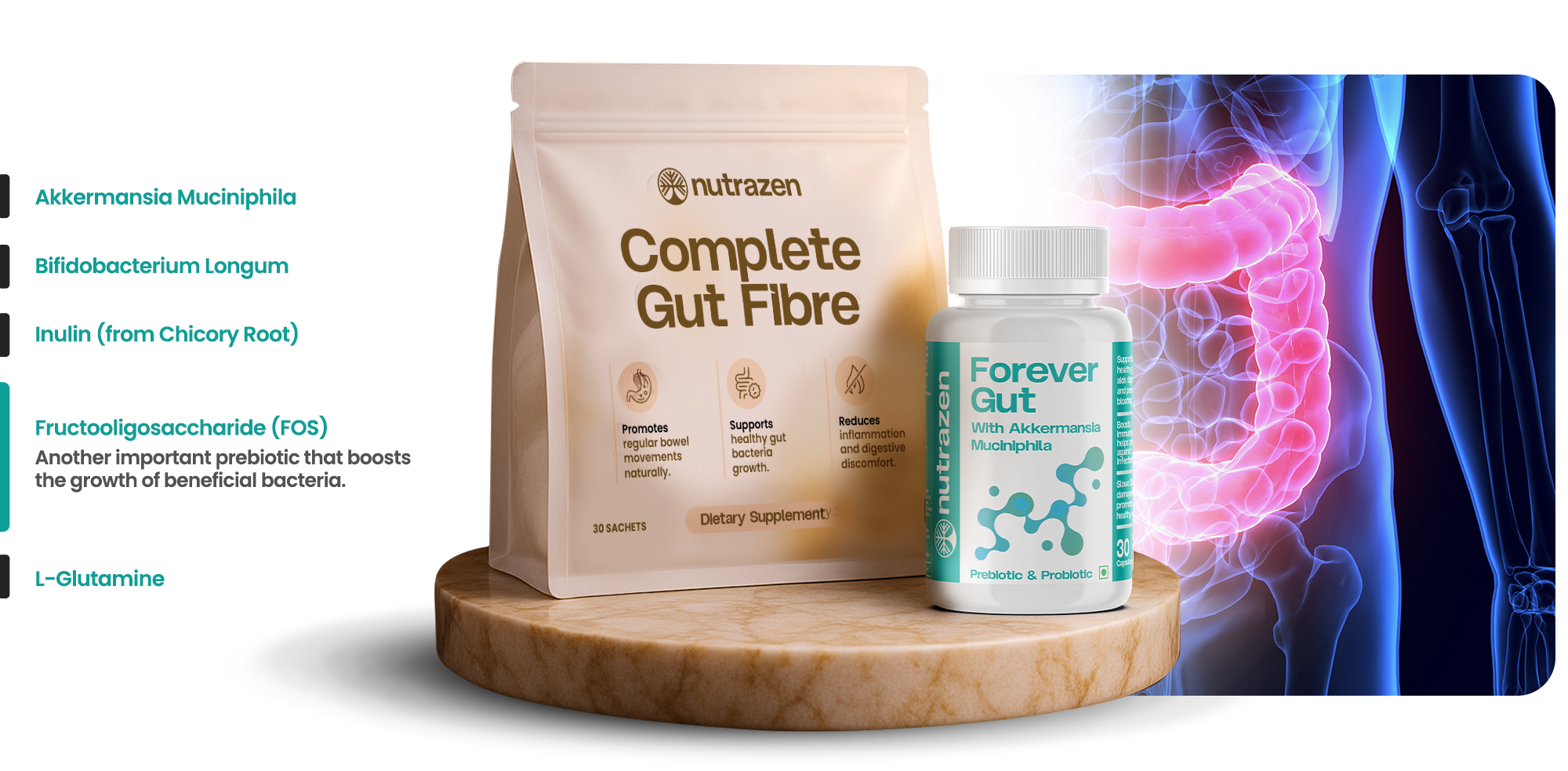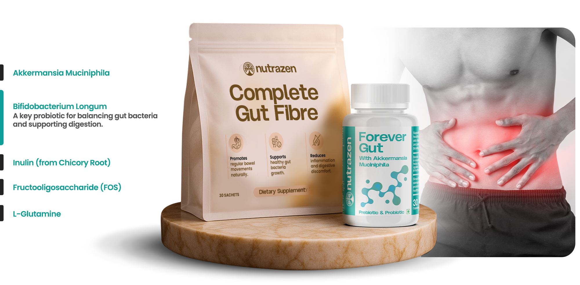 ForeverGut strengthens the gut barrier, reduces inflammation, and boosts metabolic health, while Complete Gut Fibre promotes bowel regularity, reduces inflammation, and balances the gut microbiome. Together, they provide comprehensive digestive support and overall well-being.