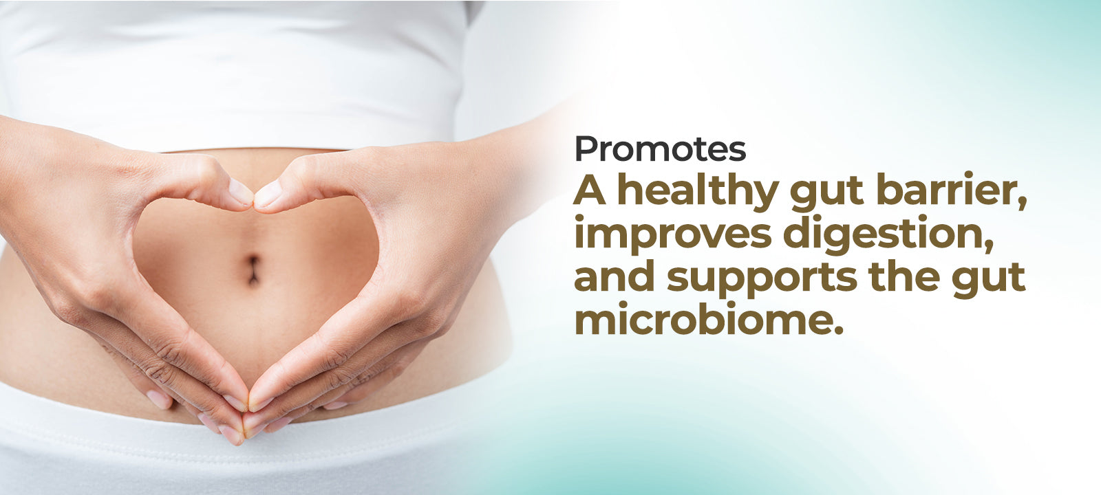Strengthens gut barrier, supports gut bacteria, and alleviates IBS symptoms.