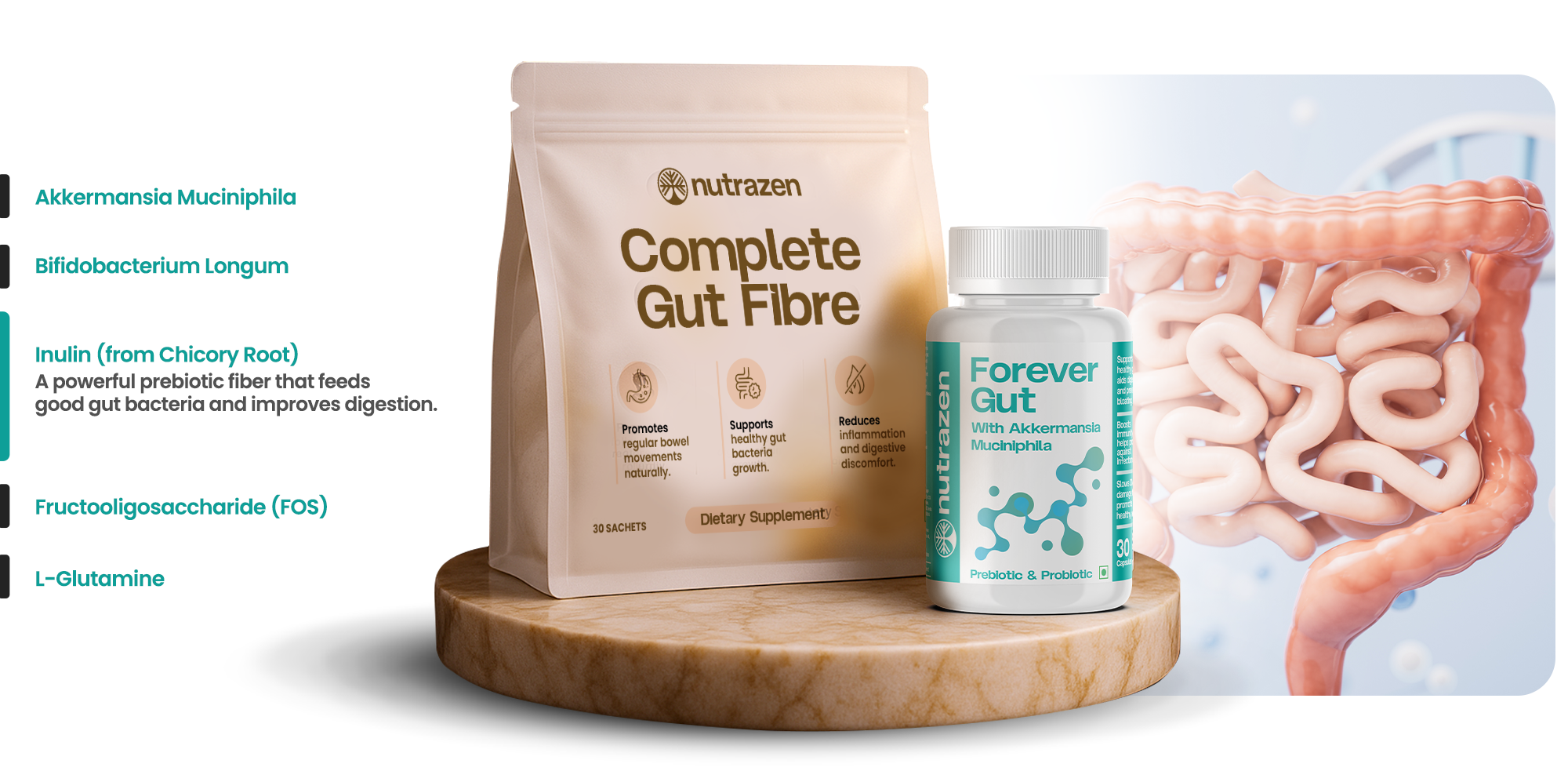 The combo synergistically supports gut health by introducing beneficial probiotic strains and providing prebiotic fibers to nourish and sustain them.