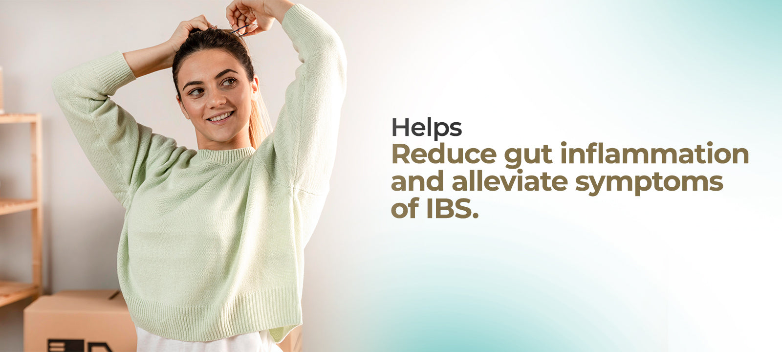 Eases abdominal discomfort, supports gut microbiota, and reduces inflammation.